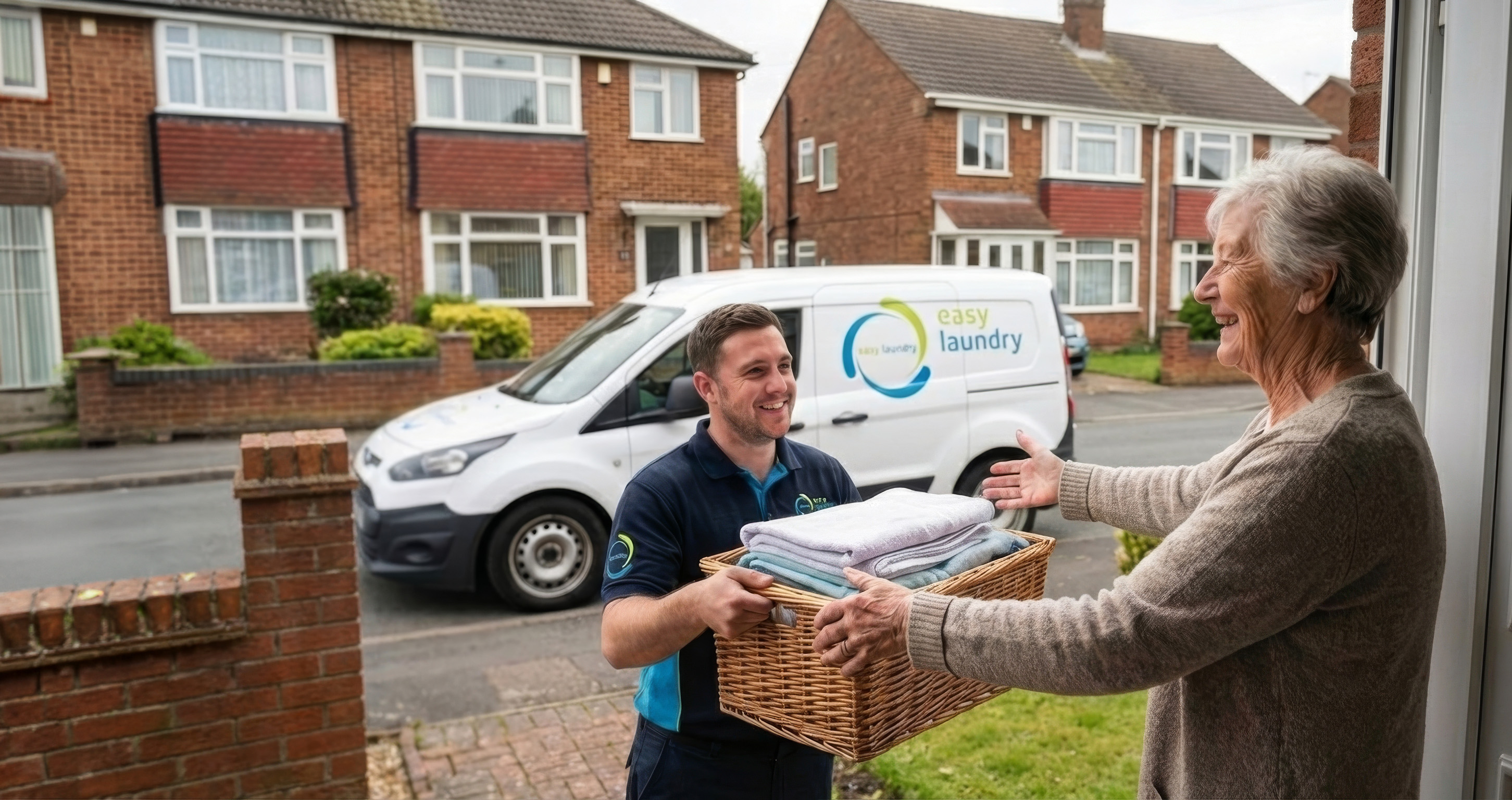 Simply contact us by phone on 0800 0932 363, by email at info@easylaundry.com, or via Facebook Messenger. We arrange a convenient collection time, pick up your laundry from your door, wash, dry and iron it at our premises, then deliver it back to you, usually within 24 to 48 hours.